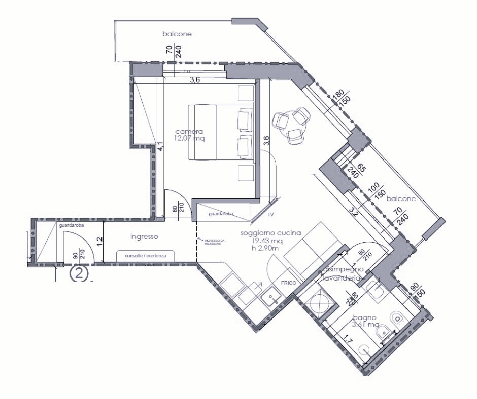 Composizione interna: Ingresso, soggiorno con angolo cottura, camera da letto, disimpegno, bagno finestrato, due balconi e cantina di pertinenza.